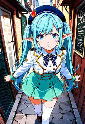 masterpiece, best quality, extremely detailed, anime, girl, skirt,blue hair,blue eyes,princess,light blue color gothic lolita,white stockings,pumps,earrings, ,colorful,different world,longhair <lora:hime_style-1.0r8:1> <lora:noline:1> <lora:sanDka2:1> <lora:hairdetailer:1>,beautiful eyes,my child,castle,balcony,wink,starry sky