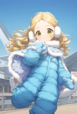{{{down jacket, puffy jacket, snowsuit, coveralls, full-length long stitched padded puffy pants, fur-trimmed sleeves, fur-trimmed cuffs, fur-trimmed hood, shiny clothes, oversized clothes}}}, latex, thick clothes, heavy clothes, chunky clothes, bulky clothes, solo, barefoot, separated legs, contrapposto, [[[[[[[[[[gochuumon wa usagi desu ka?]]]]]]]]]], pink hair, light green eyes, black jacket, black pants, short hair, {{{folded ponytail}}}, black hair ribbon, outdoors, nature, river, leg up, wet, water, reaching, sinking, happy, grin, , best quality, amazing quality, very aesthetic, absurdres
