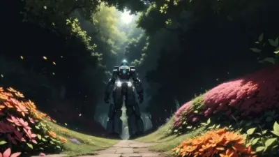 super fine illustration, masterpiece, best quality, high-resolution, epic scale, spectacle, Juvenile, solo, back view, (highly detailed broken giant-robot-background:1.4), (hang down:1.3), (zentangle:1.5), tangle, (Wrecked:1.3), vines and moss and flowers, defect, damage, decayed, kneeling, broken body, (very wide shot:1.5), (under view:1.5), (many flowers:1.3), colorful, (style-paintmagic:1.2), (forest:1.3), water surface, petals floating on water, small animals, spotlight, dappled sunlight, Lens Flare, blue sky, divine, Particle, depth of field <lora:xsarchitectural-21Futuretechnologycity:0.6> <lora:LowRA:0.2> <lora:Deadman-000004:0.2> <lora:nijiMecha:0.9>