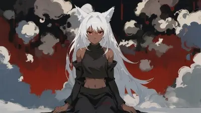 (bright color:1.10), (solo:1.20), (dark skinned female:1.20), (fox ears:1.20), (black separated t-shirt:1.10), simple long dress, midriff, detached sleeves, (white hair), small chest, red eyes, bare shoulders, BREAK extremely detailed, Depict a person sitting serenely in meditation, silent space, BREAK The atmosphere should convey calmness and deep focus, <lora:Moxin_Shukezouma11:0.20> <lora:fladdict-watercolor-sd-1-5:0.20> <lora:KM_NarutoS-V2:0.70>