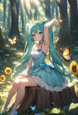 masterpiece, best quality, extremely detailed, anime, girl, Hatsune Miku, vocaloid, tie, 1girl, twin tails, long hair, , blue hair, green hair, blue eyes, one piece dress, headphones, sea, underwater, water bubbles, tropical fish, coral reef, sunken ship,bikini swimwear,soap bubbles,twintail,longhair,Armpit,fairy,fantasy,colorful,smile