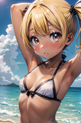 <lora:flat2:-0.5>,<lora:beautiful_detailed_eyes:0.5>,<lora:skin_tone_slider_v1:3.5>,<lora:noribs_v11:1.3>,(anime screencap:1.1),(kawaii:1.3),very cute and beautiful teenage,(petite stature:1.5),(blonde short twintails:1.3),blunt bangs,(drooping brown eyes:1.2),(medium breasts:1.3),cleavage,t-shirt,short sleeve hoodie,denim shorts,holding lottery ticket,smile,