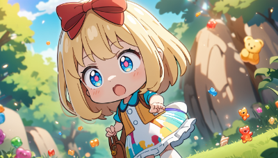 1girl, solo, blonde hair, blue eyes, short hair, (hair bow:1.4),red bow,red ribbon, small ribbon, simple hairstyle, ribbon on hair, serious expression, waiting, line of people, last in line, school uniform, white shirt, navy blue skirt, pleated skirt, red tie, tie loose, hand holding bag, school bag, standing pose, slightly turned, side view, looking forward, indoor, school corridor, soft lighting, slight shadow, detailed background, polished floor, corridor walls, classroom doors, windows, natural light, anime style, no realism, highly detailed eyes, highly detailed hair, fine details, dynamic lighting, delicate shading, soft shadows, full body, dynamic pose, best quality, amazing quality, very aesthetic, absurdres