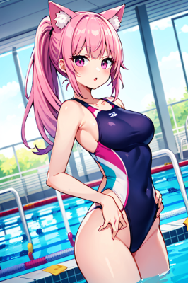 Pink hair, beautiful girl, cat ears, normal breasts, ponytail, tall, 17 years old, natural, Sport climbing, high wall, speed