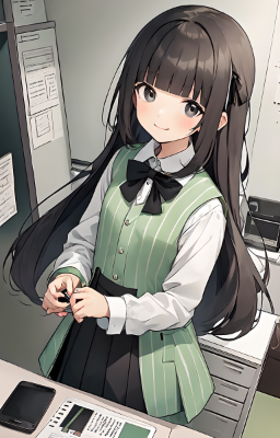 1 girl,(((very longest hair))),black hair, ,straight Hair,hair ribbon,mintgreen stripe,Black Eyes,flat chest,straight Across bangs,princess Cut, Very Long Sideburn,roundry Head,Droping eyes,cute,Meekness,Bob Cut,long back hair,12 years Old, White kimono,smile,Praying,morning sun