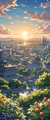 8K,(((masterpiece,best quality,Ultra extremely detailed,perfect anatomy,detailed))),((cowboy shot, from_below:1.5,Child elf holding Gummies, blueberries,pompons)),wolf_cat white hair,(looking at viewer),(opening mouth:1.5),smile,blush,lipstick,full fresh lips,big hip,((red_Eye:1.5, Eye Reflections, reflect strong highlight in eyes)), solo,hairband,wave shining white hair,cute_cheer_dress,BREAK,Makoto Shinkai Style,morning sun,sunrise,moon, garden,birds, many Gummies, blueberries,many flowers,clouds,city_of_fortress_in_distance,<lora:hairdetailer:1> <lora:make25d_type1_v100:1>,,,,,,,,