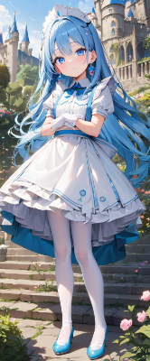 masterpiece, best quality, extremely detailed, anime, girl, skirt,blue hair,blue eyes,princess,light pink color lolita,white stockings,pumps,earrings, ,colorful,longhair,bed,soundly,my child <lora:hime_style-1.0r8:0.7> <lora:noline:1> <lora:sanDka2:1> <lora:hairdetailer:1>