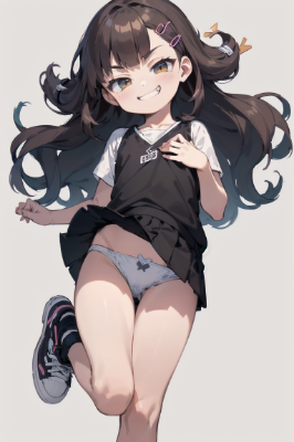 masterpiece, best quality, extremely detailed, solo, (seductive adolescent genius charming little witch kid, very thin inventive steampunk white witch bodysuit, traditional inventive symbol steampunk genius hat:1.2), thick lips, magical mecha invention, flattering laugh, shining black hair, messy semi-short hair, nice soft chest, (very opening skin, jewelry micro inventive mecha loincloth:1.4), arms behind back, (on the giant inventive mecha, very distant view of the mecha giant of a steampunk, open sitting vulgarly on giant robot:1.2) <lora:eyecolle_primula_v100:1> <lora:hyperdetailer_v060:0.7>,