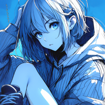 (Blue background:1.3), (Forest background:1.3), (extremely detailed fine touch:1.3), (hard light, studio light, light rays, dappled light, reflection, shadows, ray tracing:1.0), (rough sketch:1.3), (2D:1.3), ///, Blue background, 2D dark manga style color line drawing sketch for adults, highly finished ultra-detailed 8K vibrant pen sketch, extreme concept of impossible novelty and compelling composition, beautiful and aesthetic , great aesthetic sensibility, reduced banding, beautiful and delicate line drawing, beautiful expression of light, short gray hair girl, hoodie, fashion, sneakers