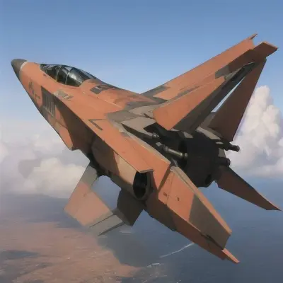 先に投稿した画像からPNG infoを使わない方法で画像要素を抜き出して、以下の呪文作成して \"an red fighter jet flying in the sky, polycount contest winner, photorealism, ace combat, fully detailed render, tomcat replica, inside future fighter\" Bingのダリさんで作画。 Blenderにもダリさんを使えるアドオンがあるので、気に入った画像が出来たら3D化して”クインビーLora”でも作りましょうか。