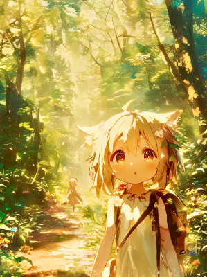 Kuma Musume went to school cheerfully, dressed in her school uniform. On the way to school, I enjoy waving to friends and stepping on fallen leaves.