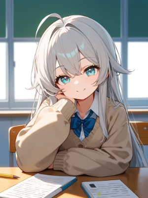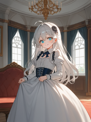score_9, score_8_up, score_7_up,source_anime,masterpiece,highres,best quality,high quality,hyper extreme detailed,hyper extreme detailed face,detailed face,BREAK,a cute girl,18 years old,small breast,little height,fine-boned face,long hair,ahoge,white hair,gray hair,azure eyes,happy,