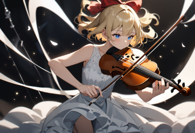 1girl,solo,blonde hair,blue eyes,short hair,red ribbon,(hair bow:1.4),red bow,conductor,holding baton,standing,elegant pose,forest animals,orchestra,forest clearing,surrounded by trees,glowing fireflies,animals holding tiny instruments,soft moonlight,detailed background,beautiful detailed eyes,determined expression,straight posture,arms raised,small smile,graceful,skirt swaying in breeze,conductor's outfit,formal clothing,black jacket,white shirt,black skirt,knee-length skirt,black shoes,gentle wind,hair moving slightly,small animal audience,rabbits,squirrels,birds,tiny violins,tiny flutes,tiny drums,detailed trees,detailed leaves,green grass,soft lighting,glowing atmosphere,warm tones,starry sky above,moon shining through trees,peaceful expression,gentle atmosphere,soft shadows,beautifully detailed night sky,subtle details,glistening leaves,close-up view,long shot,soft contrast,no clouds,magical atmosphere,elegant stance,relaxed hands,expressive face,focus on girl,detailed conductor baton,light sparkles,glowing aura around girl,moonlight on the scene,serene atmosphere,music notes floating in air,small glowing orbs,soft background light,firefly trails,whimsical atmosphere,magical setting,harmony in nature,sense of peace,animals following the girl,beautiful arrangement of the scene,natural beauty,mystical forest,subtle glow around animals,orchestral performance in nature,artistic composition,fantasy vibe,night-time setting,small forest animals participating,cheerful tone,soft greenery,vibrant colors,peaceful night sky,clear stars,delicate details on animals,expressive eyes,animals focused on girl,girl as center of attention,harmony in motion,conductor in action,trees framing the scene,gentle flow of air,soft glowing effects,peaceful forest,cute animal expressions,well-organized orchestra,symphony in nature,girl leading animals,whimsical and gentle atmosphere,charming expressions on animals,captivating scene,magical glow in the forest,focus on conductor's baton,expressive girl,delicate forest details,clean and bright scene,conductor leading music in harmony,enchanted forest setting,soft moonlit glow on conductor,subtle texture on trees and leaves,slight breeze in the air,natural elements blending with the scene,vibrant and charming forest,full moon casting shadows.,
