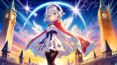 (embroidery Blazer school uniform),(ribbon),(embroidery),(hairpin),(beret hat),(Wide frill mini skirt:1.2),(white blouse),,(break),,,,,,