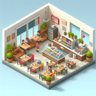 1‐4枚目:small 3d game isometric, cafeteria