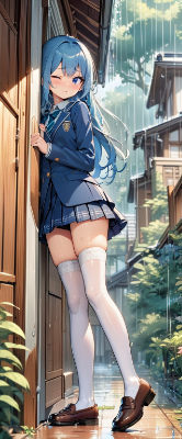 masterpiece, best quality, extremely detailed, anime, girl, skirt,blue hair,blue eyes,princess,maid,light pink color waitress uniform,white stockings,pumps,earrings,colorful,makeup,wink,kitchen, , , , , <lora:hime_style-1.0r8:1> <lora:hairdetailer:1>,longhair