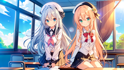 (embroidery Blazer school uniform),(ribbon),(embroidery),(hairpin),(beret hat),(Wide frill mini skirt:1.2),(white blouse),,(break),,,,,,