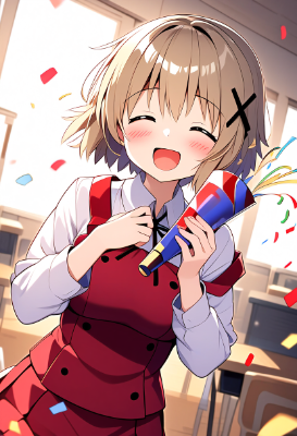 yuno (hidamari sketch),red school uniform, labcoat,standing,holding flask,cowboy shot, ai-generated, laboratory,blackboard,Laboratory equipment, best quality, amazing quality, very aesthetic, absurdres