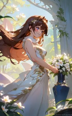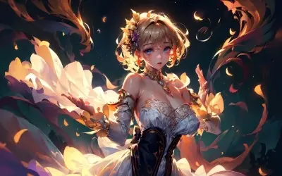 A cute girl, dressed in a magnificent kimono adorned with cherry blossoms, stands at the edge of a snow-covered forest. The moon's gentle glow illuminates her path as she embarks on a magical adventure. Surrounded by towering trees with branches laden with snow, she is filled with determination and curiosity. In her hands, she holds an antique map, leading her to an ancient shrine hidden deep within the woods. The girl's eyes sparkle with excitement as she gazes at the distant glow of lanterns, signaling the presence of mystical creatures and guardian spirits. The air is filled with a soft melody, carried by the wind, as she takes her first step into the enchanting unknown.