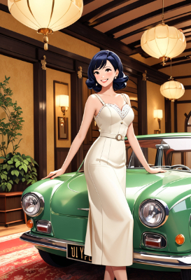 bestquality,1wife woman,wifemodel,レトロな車の横で微笑む人妻、black hair,medium breasts,beautyful woman, retro FASHION in 80tys ,((smile)),((sunnysmaile)), amazing sapraizz,inside retoro house,extremely fineandbeautifuldesign,dynamic production <lora:saturation:1> <lora:make25d_type2_v100:1>