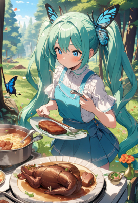 masterpiece, best quality, extremely detailed, anime, girl, skirtmasterpiece, best quality, extremely detailed, anime, girl, skirt,hatsunemiku,vocaloid,twintail,mini skirt,longhair,blue hair,green hair,blue eyes,delicious,rural scenery,countryside station,peaceful countryside,retro,local railway,locomotive,blue sky,persimmon,smile,Sweet chestnut