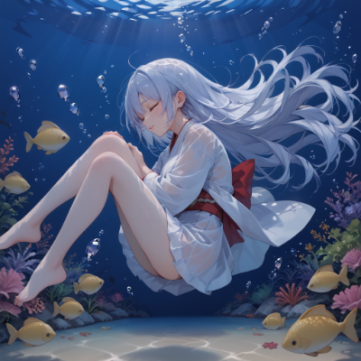 1 girl,20years old,blunt bangs,black hair,upturned eyes,red eyes,cute face,wheatish skin,shiny skin,mermaid,long hair,shiny hair,