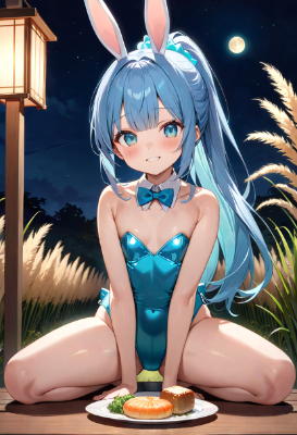 outdoors, (night:1.2),, a vase of Japanese pampas grass on either side of the jugoya bun on a plate is offered to 、Wide shot <lora:sensualface_type2:1> <lora:flat2:1>