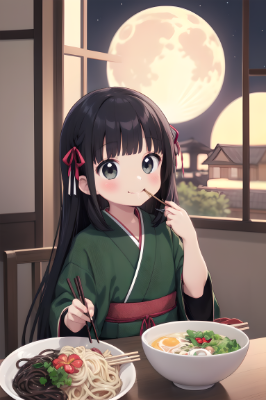 1 girl,(((very longest hair))),black hair, ,straight Hair,hair ribbon,mintgreen stripe,Black Eyes,flat chest,straight Across bangs,princess Cut, Very Long Sideburn,roundry Head,Droping eyes,cute,Meekness,Bob Cut,long back hair,12 years Old, smile,kimono,wolf,Tamer,Dogwalker