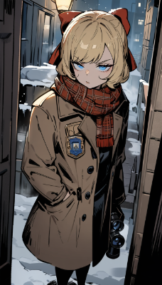 1girl,loli,chibi,short hair,blonde hair,blue eyes,(hair bow:1.4),red bow,small child,lost child,crying,tears,standing,looking up,worried expression,downtown,cityscape,busy street,buildings,shops,crowd,1policewoman,uniform,approaching,concerned expression,hand outstretched,offering help,masterpiece,best quality,very aesthetic,absurdres(masterpiece:1.2),(best quality:1.2),(very aesthetic:1.2),(absurdres:1.2),