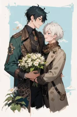 1boy, solo, super fine illustration, an extremely delicate and beautiful, best quality, white hair, green eyes, lying supine on a bed, dazed expression, daydreaming, arms up, opend shirt,show off nipples, (bottomless:1.4), slender,full-face blush, steam, sweat,NSFW