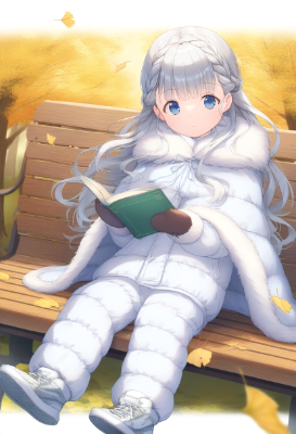 {{{{{down jacket, snowsuit, winter clothes, full-length long stitched padded puffy pants}}}}}, {{{fur-trimmed sleeves, fur-trimmed cuffs, oversized clothes, shiny clothes, layered clothes}}}, [[[latex]]], solo, sneakers, legs apart, contrapposto, [[[[[[[[[[gochuumon wa usagi desu ka?]]]]]]]]]], {{{{{layered large long fluffy fur-trimmed cape}}}}}, mittens, {{{indoors, in warehouse, light smirk, kicking, fighting stance, motion blur}}}, white hair, purple eyes, navy blue jacket, navy blue pants, medium hair, long sidelocks, , best quality, amazing quality, very aesthetic, absurdres