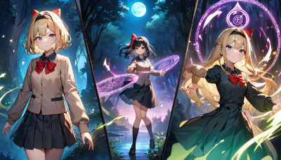 2girls,blonde hair,blue eyes,short hair,(hair bow:1.4),red bow,black hair,brown eyes,long hair,hairband,outdoor,large telescope,observatory,starry sky,night scene,surprised expression,wide-eyed,open mouth,pointing,looking up,full moon,shooting star,constellations,anime style,(masterpiece:1.2),(best quality:1.3),(very aesthetic:1.1),(absurdres:1.2),detailed background,grass field,hilltop,trees,bushes,flowers,stone path,wooden fence,bench,small building,dome structure,reflective lens,metal structure,gears,dials,control panel,stairs,platform,railing,jacket,t-shirt,skirt,shoes,socks,casual wear,summer clothes,backpack,star chart,binoculars,flashlight,telescope eyepiece,focus knob,tripod,mount,counterweight,finder scope,star trails,milky way,planets,nebula,galaxy,meteor shower,aurora,zodiac signs,space,universe,wonder,curiosity,excitement,friendship,learning,discovery,science,astronomy,astrophotography,nocturnal,clear night,twinkling stars,crescent moon,planetary alignment,comet,asteroid,satellite,space station,ufo,alien,crop circle,fireflies,lanterns,campfire,tent,sleeping bag,marshmallows,hot cocoa,blanket,picnic basket,camera,tripod,star map,compass,telescope manual,stargazing guide,laptop,headlamp,warm lights,cool shadows,depth of field,atmospheric perspective,silhouettes,reflections,lens flare,bokeh,dynamic composition,rule of thirds,leading lines,focal point,contrast,vibrant colors,soft glow,ethereal atmosphere,magical moment,childhood wonder,scientific curiosity,(wind:1.1),rustling leaves,cricket sounds,owl hooting,frog croaking,distant city lights,airplane lights,shooting star wishes,telescope focusing,adjusting positions,whispering,giggling,gasping,amazement,awe-inspired faces,hair flowing,clothes rustling,animated gestures,lively poses,expressive body language,cute chibi style,kawaii elements,sparkles,motion lines,sound effects,thought bubbles,mini map,zodiac wheel,constellation chart,space facts,quirky alien mascot,steampunk telescope design,magical girl transformation,space explorer outfits,holographic displays,futuristic UI elements,