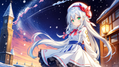 (city background:1.2),(fantasy),(clock tower),(crystal),(neon color light),(galaxy),(Cinderella night),(A magical night),,(break),,,,,