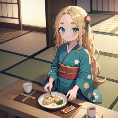 masterpiece,best quality,extremely detailed,1girl,child,infant body type,flat chest,blonde hair,wavy hair,long hair,aqua eyes,thick eyebrows,show_forehead,Cute_smock,cute_socks,cute_shoes,cute_beret,smile,(She is looking at various works of art in a museum:1.2),standing,