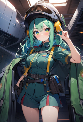 Al同じようなTasteのものを描いて,つまらない、ああ,つまらない、傑作, 最高品質, 超詳細な, masterpiece, more_details:-1, more_details:0, more_details:0.5, more_details:1, more_details:1.5, 1 pilot woman with medium breasts with helmet on head wearing military pilot uniform, standing on J 35 wing near the cockpit, looking at veiwer, making peace sign, (Saab j35 ドラケン 戦闘機/green colors),ダイナミックな演出