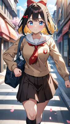 2girls,small,blue eyes,short hair,blonde hair,hair bow,red bow,black eyes,long hair,black hair,hairband,anime,sparkling eyes,surprised,happy,open mouth,detailed face,masterpiece,best quality,very aesthetic,absurdres2,