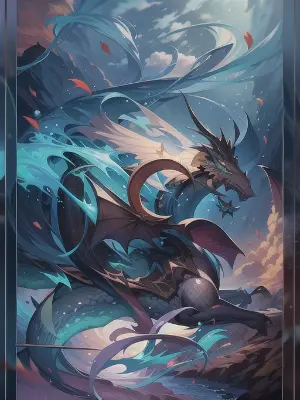 赤いドラゴンも過去に作っていたので、こちらも投稿。「水(アクア)」との対照で「炎(フレイム)」にしました。 こちらも「水竜(アクアドラゴン)」と同様に、『WOMBO Dream - AI Art Generator』で作った絵(2枚目)を、『Meitu』のAIイラストメーカーで加工(1枚目)しています。 日本語入力できた時に作成したもののため、プロンプトの記録がありませんが、恐らく「とある竜の恋の歌」だったと思います(ちなみに楽曲名です)。