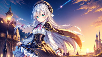 (embroidery colorful Adventure clothing),(leather cape),(Gothic and Lolita Clothing),(ribbon beret hat),(embroidery),(hairpin),(frill mini skirt),,,(break),,,,,,