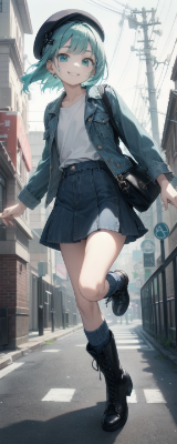 masterpiece, best quality, highres, 1otoko no ko, solo, blouse, vest, pencil skirt, pantyhose, high heels, かわいい, flat chest, aqua hair, aqua eyes, half updo, smile, 16 yo, nice hands, perfect hands, office<lora:flat2:0> <lora:hairdetailer:0.5><lora:GoodHands-vanilla:1>