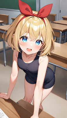 1girl,solo,(anime style:1.3),chibi,(loli:1.4),blonde hair,blue eyes,short hair,(hair bow:1.4),(red bow:1.2),business suit,black suit jacket,pencil skirt,(professional appearance:1.2),confident stance,serious expression,(determined look:1.3),standing pose,straight posture,office background,modern interior,medium breasts,white dress shirt,black necktie,high heels,hands at sides,chin up,(career woman:1.2),young adult,indoors,office desk,office window,city view,morning light,polished appearance,formal attire,detailed suit fabric,perfect grooming,slight smile,(eye focus:1.1),black stockings,briefcase,wristwatch,gold accessories,shoulder-length bob cut,neat bangs,air of authority,professional demeanor,office lady,detailed shadow,corporate setting,(masterpiece:1.4),(best quality:1.4),(very aesthetic:1.3),absurdres,clean lines,sophisticated atmosphere,powerful pose,attentive expression,business environment,sleek design,contemporary style,mature appearance,elegant,