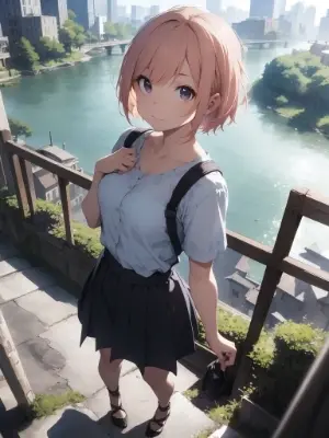 girl, ((gray hair)), (short hair), (black eyes), (hair over one eye:1.2), small breasts, mini skirt, (looking away:1.3),