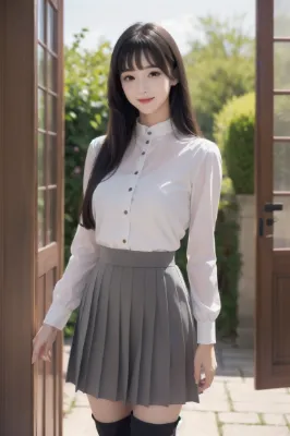 (photorealistic:1.4), (RAW photo), masterpiece, best quality, extremely detailed, lady, elegant, light brown, shiny, glossy, trench puffer coat, mini skirt, leather gloves, knee length boots, almond shaped drooping eyes, smile, staring, black long hair, <lora:hime_style-1.0r8:0.8>,