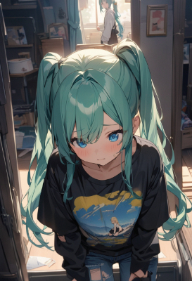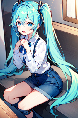 このページは現在開発中です。リニューアル版はすべて開発中のため不具合が起きる可能性があります!一部機能を新しくリリースし直しています!基本的には旧版をそのままご利用ください!旧バージョンへ不具合報告参照生成するいいね24推薦アイドルの私服2024年10月07日 08時33分使用モデル名:milktea対象年齢:全年齢スタイル:イラストデイリー入賞 170 位参加お題:私服#初音ミク#私服#かわいい#ツインテール#女の子部屋PromptsNegativePromptsParameterOthermasterpiece, best quality, extremely detailed, anime, girl, skirt初音ミク,vocaloid,mini skirt,twintail,longhair,blue hair,green hair,blue eyes,Picture shirt,damaged jeans,sleeves,機械だらけの部屋でパソコンの前でゲーミングチェアに座る可愛い笑顔の初音ミク。Copy生成情報戦場の天使マリン