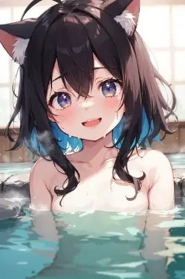 BREAK (kawaii, little girl)+++, (toddler body)++, (multicolored hair)-, (black hair)+, ahoge, medium hair, (wavy hair)--, hair between eyes, cat ears, cat tail