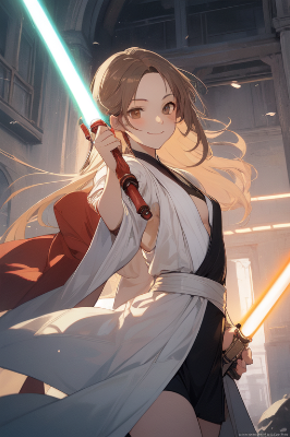 1〜6枚目:理沙 特に実在の誰とは重ねてない。当初、アホみたいな格好ばっかで、投稿に加えようとしたけどR-15・18になるのでやめといた w それなりにデキた代償として、隊服での生成が少ない。 理沙「沖田(りっか)クン、行こうか」(4) ワケわからんシチュ(5) 7〜15枚目:美波 徳川家康も贈られたくらいなんだから、幕末にはメガネもポピュラーなんだろう、きっと。理沙と同じく特に誰とのイメージはしてない。 この世界線(時代)でも美波ちゃんは短い刃物(ナイフ)がお好きらしい。 胸元が際どいのあるけど、もっとやべーのも生成された。 脇差を背にまわして相手を惑わせる(13) 16〜18枚目:先輩 髪を結ぶ位置、結んでるのがリポンっぽい、内国安全保障局でありありな女の子っぽいモードだと、沖田りっかと区別つかなくなる。 今回、新撰組に新参加をして思ったのだが、先輩は斎藤一より土方サンのほうがよかったのかなぁ……