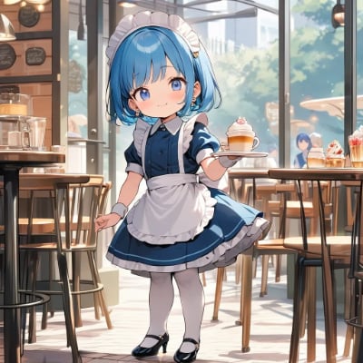 masterpiece,best quality,extremely detailed,anime, girl, skirt,blue hair,blue eyes,princess,light pink color lolita,white stockings,pumps,earrings,colorful,wink,Fashionable,cafe,alley,garter belt,rear view,rain, <lora:hairdetailer:1> <lora:hime_style-1.0r8:1>,sky,twintail