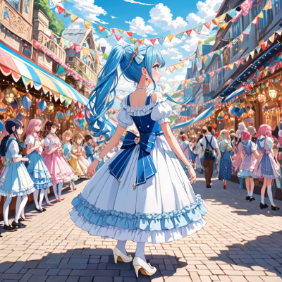 masterpiece,best quality,extremely detailed,anime,girl,skirt,blue hair,blue eyes,princess,white stockings,pumps,earrings,colorful,wink,Fashionable,gradation color Lolita Fashion,fantasy,different world,Twinkling, ,painting,drawing,living room, , , , <lora:hairdetailer:1> <lora:hime_style-1.0r8:1>,longhair