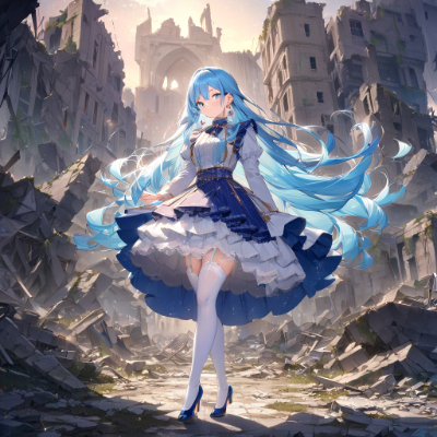 masterpiece,best quality,extremely detailed,anime,girl,skirt,blue hair,blue eyes,princess,white stockings,pumps,earrings,colorful,wink,Fashionable,gradation color Lolita Fashion,fantasy,different world,Twinkling, ,painting,drawing,living room, <lora:hairdetailer:1> <lora:hime_style-1.0r8:1>,twintail