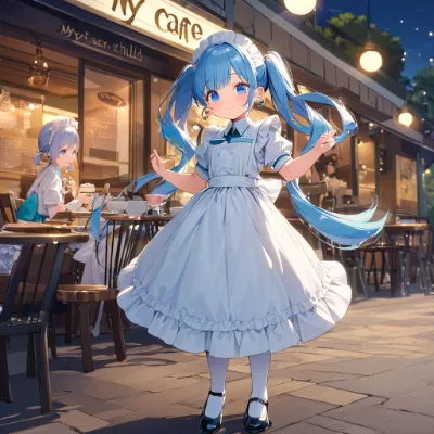 masterpiece,best quality,extremely detailed,anime,girl,skirt,blue hair,blue eyes,princess,white stockings,pumps,earrings,colorful,wink,Fashionable,rear view,light pink color Lolita Fashion,fantasy,different world,Twinkling, ,inner color hair,festival , , <lora:hairdetailer:1> <lora:hime_style-1.0r8:1>,ponytail