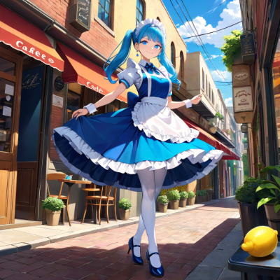masterpiece,best quality,extremely detailed,anime,girl,skirt,princess,gradation color dress,white stockings,pumps,earrings,colorful,makeup,wink,fantasy,castle,blue hair,blue eyes ,garter belt <lora:hime_style-1.0r8:1> <lora:hairdetailer:1>,church,twintail